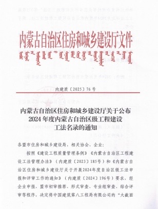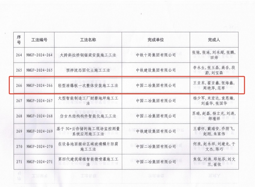 近日,從內(nèi)蒙古自治區(qū)住房和城鄉(xiāng)建設(shè)廳傳來喜訊,市政分公司申報的《輕型泄爆板安裝施工工法》成功獲評2024年度內(nèi)蒙古自治區(qū)省級工法。