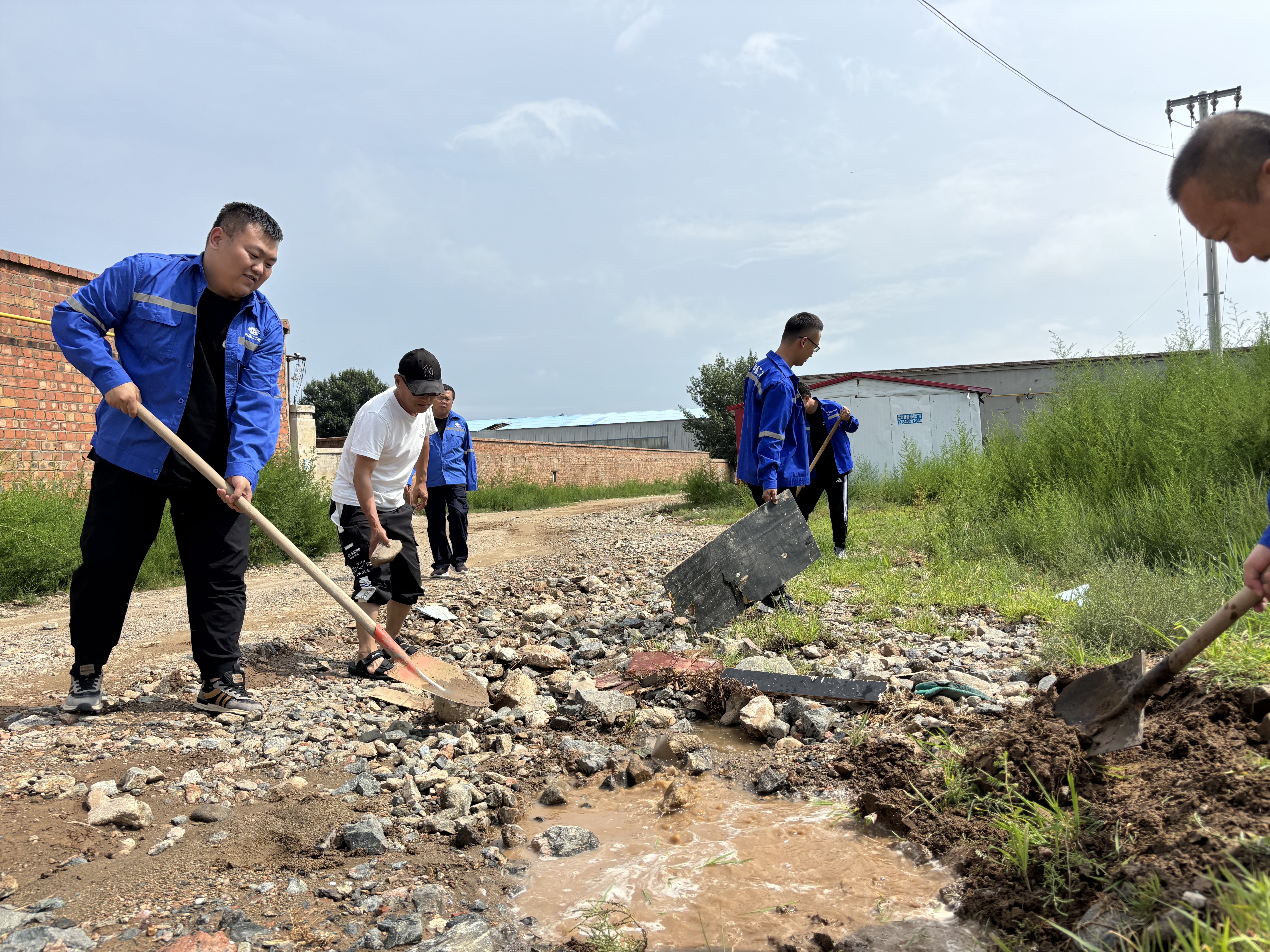 “哪里有危險,哪里就有黨員突擊隊身影”。連日來,面對包頭地區(qū)強降雨,項目部巡查組、黨員突擊隊沖鋒在前,每天派專人檢查項目現(xiàn)場臨時用電、四周道路狀況,發(fā)現(xiàn)險情立即報告防汛領(lǐng)導小組進行整改。7月23日凌晨3點,包頭地區(qū)再次狂風肆虐、暴雨滂沱,項目部黨員身披雨衣,依舊堅守在一線,對施工現(xiàn)場各危險區(qū)域進行巡查,當黨員們深入烏蘭計六村時,發(fā)現(xiàn)道路嚴重破損,影響居民出行,項目部防災防汛領(lǐng)導小組立即與周邊居民溝通并獲得支持,組織黨員突擊隊對道路進行了全面的修繕工作。從場地平整、模板安裝到混凝土澆筑、路面拉毛,每一道工序都凝聚了項目部的辛勤付出,平坦的道路得到了過路村民的一致好評,烏蘭計六村村委會對項目部的辛勤付出送上了衷心感謝。