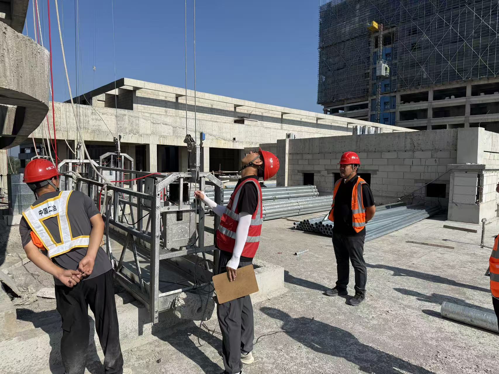 此次檢查由項目經(jīng)理親自帶隊,安全、工程、技術全體成員、各分包單位負責人共同參加。檢查組重點圍繞關鍵崗位人員到崗情況、履職履責情況,現(xiàn)場安全防護、臨時用電、消防安全、特種作業(yè)、吊籃等開展針對性的安全檢查。針對現(xiàn)場發(fā)現(xiàn)的隱患,項目經(jīng)理指出,項目管理要嚴守紅線意識與底線意識,現(xiàn)場管理人員要嚴格自我要求、切實履行職責,加強安全巡視并確保覆蓋所有作業(yè)面;要堅持每日檢查大型機械、吊籃、高處作業(yè)等,做好臨電、臨邊防護、洞口防護的檢查管理,發(fā)現(xiàn)問題立即整改。同時,我們要加快現(xiàn)場施工進度,盡早完成存在安全隱患的施工內(nèi)容,從而消除安全隱患,要通過切實有效的保安全、保質(zhì)量措施,保障項目建設順利推進。