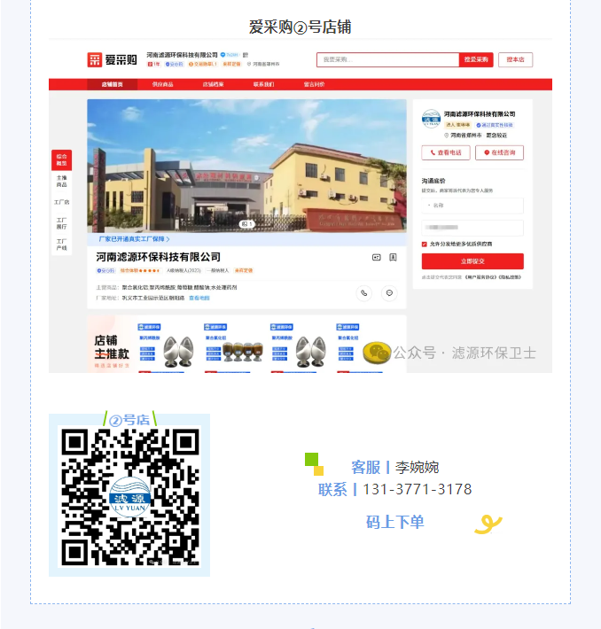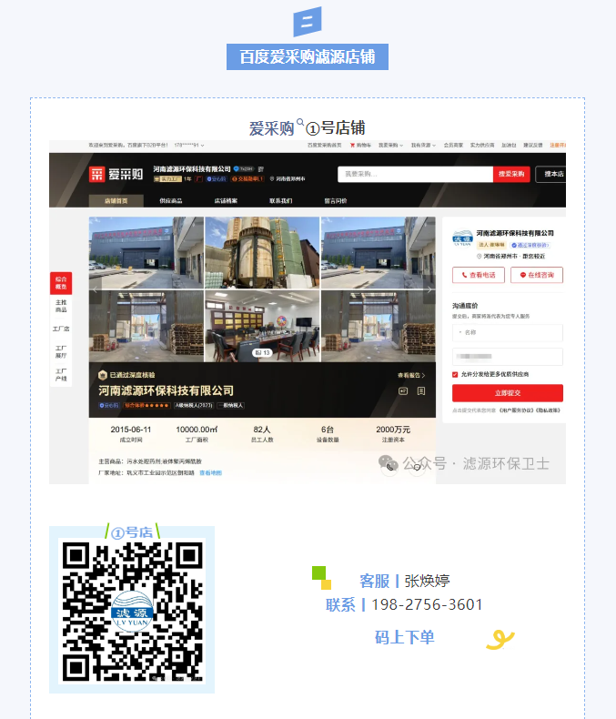 官方平臺下單——全面擊破您對產品質量、交易安全、售后服務的顧慮 咨詢熱線:15638187355 在線咨詢 產品詳細 上一篇:生活污水處理廠常用藥劑類型、用途及用量 下一篇:污水廠常用藥劑比例及操作技巧 用手機看 拍下二維碼,信息隨身看 試試用手機掃一掃,在你手機上繼續觀看此頁面。