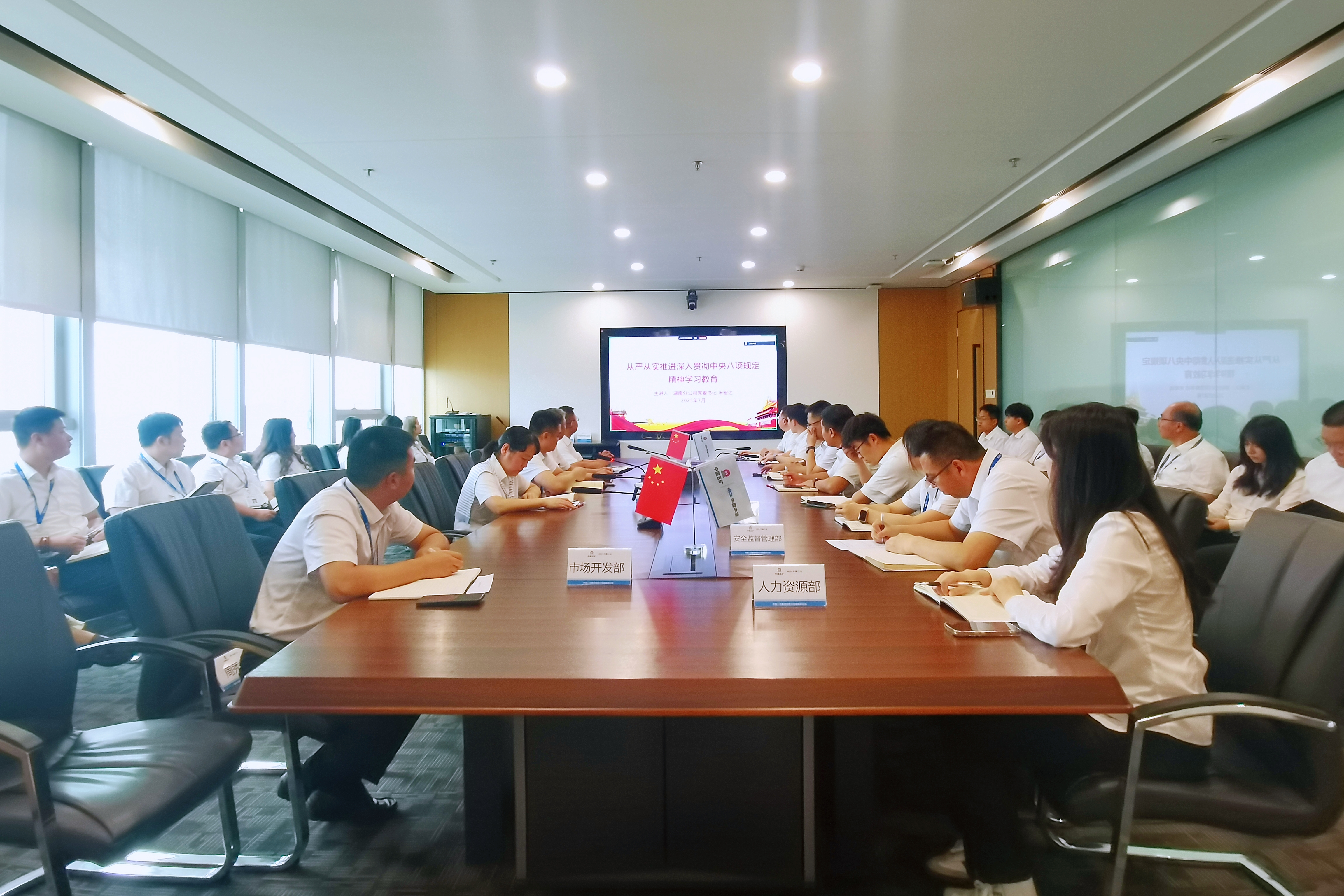 7月22日,湖南分公司黨委書記、總經理米宏達為全體黨員講授深入貫徹中央八項規定精神學習教育專題黨課。