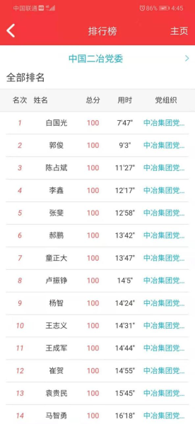 本次黨史知識(shí)競(jìng)賽,內(nèi)容涵蓋了習(xí)近平《論中國共產(chǎn)黨歷史》、《毛澤東、鄧小平、江澤民、胡錦濤關(guān)于中國共產(chǎn)黨歷史論述摘編》、《習(xí)近平新時(shí)代中國特色社會(huì)主義思想學(xué)習(xí)問答》、《中國共產(chǎn)黨簡史》等黨史內(nèi)容。競(jìng)賽依托五礦智慧黨建app平臺(tái)進(jìn)行,競(jìng)賽共300道試題,包括單項(xiàng)選擇、多項(xiàng)選擇。在競(jìng)賽時(shí)間內(nèi)可以隨時(shí)參與答題。后臺(tái)會(huì)根據(jù)答題的正確率由高到低進(jìn)行排列,正確率相同的,將已答題用時(shí)進(jìn)行排序。在答題競(jìng)賽中,每位黨員積極思考,認(rèn)真答題,踴躍參與,不少黨員紛紛表示,通過這個(gè)知識(shí)競(jìng)賽,使黨史、黨章、黨規(guī)都印在腦海里,理解也深刻。希望公司今后能多舉辦類似活動(dòng),提升黨員政治理論知識(shí)與黨員思想覺悟能力,爭(zhēng)做優(yōu)秀共產(chǎn)黨員。本次黨史知識(shí)競(jìng)賽活動(dòng),公司共有1560名黨員干部踴躍參加,經(jīng)過激烈角逐,來自四川分公司的白國光以7分47秒的優(yōu)異成績?nèi)〉脻M分,獲得本次競(jìng)賽活動(dòng)的一等獎(jiǎng);來自市政分公司的郭俊等5名黨員獲得二等獎(jiǎng);來自華東分公司的王成軍等10名黨員獲得三等獎(jiǎng);來自甘肅分公司的高國義等30名黨員獲得優(yōu)秀獎(jiǎng)。