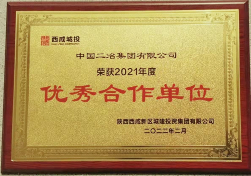 3月25日,中國二冶收到陜西西咸新區城建投資集團有限公司2021年度“優秀合作單位”榮譽獎牌。