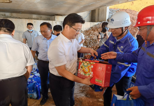 7月26日下午,永州市委副書記、市長陳愛林深入中國二冶濱江新城康養綜合體項目湘江東路建設工地開展“送清涼”活動,走訪慰問一線施工人員,為他們送去解暑物資,并致以親切問候。永州市人大常委會副主任、市總工會主席胡先榮,市政府秘書長齊愛社參加。