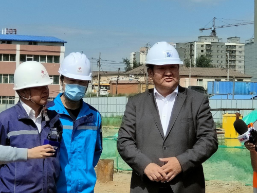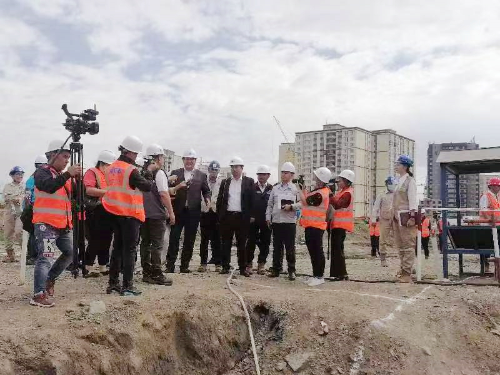 蒙古國建設(shè)部部長到中華人民共和國援建中國二冶承建的蒙古國棚戶區(qū)改造項目檢查指導(dǎo)工作