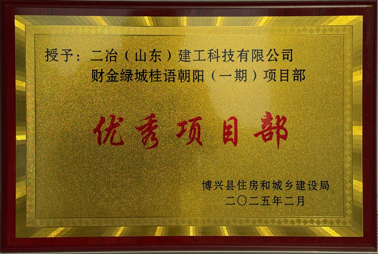 2月22日,濱州市博興縣住房和城鄉(xiāng)建設(shè)局授予二冶(山東)建工科技有限公司桂語(yǔ)朝陽(yáng)(一期)項(xiàng)目部“優(yōu)秀項(xiàng)目部”。