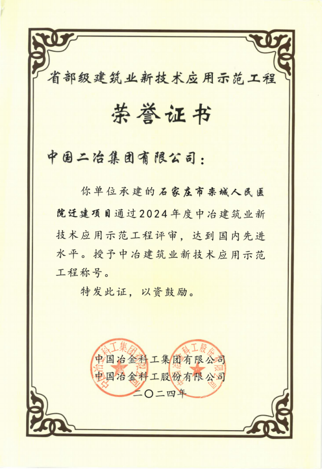 中國二冶三個項(xiàng)目獲評中冶建筑業(yè)新技術(shù)應(yīng)用示范工程