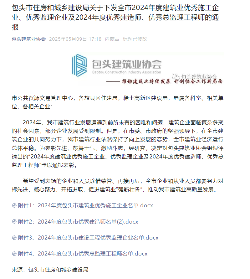 近日,包頭市住房和城鄉(xiāng)建設(shè)局通報(bào)表彰了全市2024年度建筑業(yè)優(yōu)秀施工企業(yè)、優(yōu)秀監(jiān)理企業(yè)及2024年度優(yōu)秀建造師、優(yōu)秀總監(jiān)理工程師。中國(guó)二冶獲評(píng)“2024年度包頭市建筑業(yè)優(yōu)秀施工企業(yè)”,同時(shí)30名職工獲評(píng)2024年度包頭市優(yōu)秀建造師,為公司榮譽(yù)榜再添佳績(jī)。