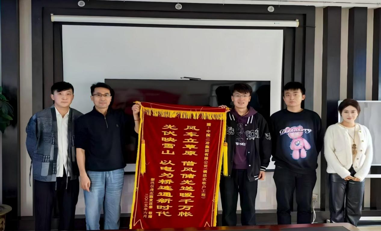 錦旗上題寫“風(fēng)車立草原,借風(fēng)儲光送暖千萬帳;光伏映雪山,以電為橋連通新時代”,生動詮釋了項目的核心價值與深遠(yuǎn)意義。新巴爾虎左旗政府表示,該項目地處內(nèi)蒙古偏遠(yuǎn)牧區(qū),氣候條件惡劣、交通出行不便,整體施工環(huán)境極為艱苦。面對挑戰(zhàn),項目管理團(tuán)隊充分發(fā)揮技術(shù)與管理優(yōu)勢,始終以“高標(biāo)準(zhǔn)、高質(zhì)量、高效率”為施工準(zhǔn)則,全力克服物資運(yùn)輸困難、極端天氣影響等多重難題,最終如期完成節(jié)點任務(wù)。該項目的順利推進(jìn),不僅成功解決了當(dāng)?shù)剞r(nóng)牧民的急難愁盼問題,直接惠及數(shù)百戶農(nóng)牧民家庭,顯著提升了牧區(qū)群眾的生活品質(zhì);更通過產(chǎn)業(yè)配套升級,為當(dāng)?shù)亟?jīng)濟(jì)可持續(xù)發(fā)展注入了新動能,為邊疆牧區(qū)發(fā)展奠定了堅實基礎(chǔ)。