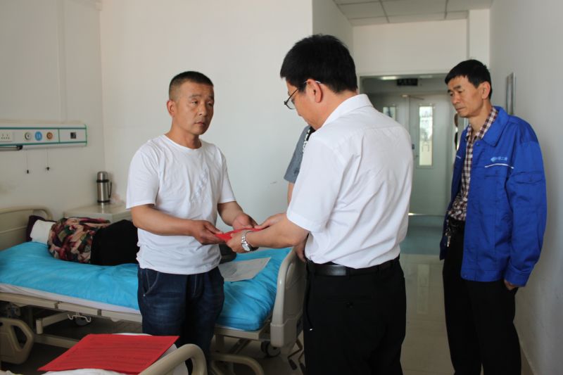 6月1日,路橋分公司黨委副書記與該公司設備物資租賃站黨政領導及相關部門負責人,將9730元愛心捐款送到設備物資租賃站困難職工董昌權手中。