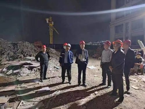 在4月19日深夜,新昌縣縣政府主要領(lǐng)導(dǎo)采取不打招呼、不聽匯報(bào)、直赴現(xiàn)場的方式進(jìn)行突擊檢查,目睹了現(xiàn)場燈火通明,馬不停蹄的施工大干場面,查看了室外道路東西兩側(cè)路基施工及室內(nèi)裝修進(jìn)度情況,對項(xiàng)目部施工給予了高度肯定,對參建人員表現(xiàn)出的不畏艱難、敢于擔(dān)當(dāng)?shù)木癖硎举潛P(yáng)。并要求項(xiàng)目部在扎實(shí)做好自身防疫的同時(shí),堅(jiān)持“目標(biāo)不變、任務(wù)不變、時(shí)間不變”原則,確保項(xiàng)目按期交付。項(xiàng)目經(jīng)理也做了明確的表態(tài),將嚴(yán)格按照各項(xiàng)規(guī)定和上級工作要求,扎實(shí)有效做好疫情防控工作,不斷加強(qiáng)項(xiàng)目安全、質(zhì)量、文明施工、工期進(jìn)度等重要環(huán)節(jié)的管理,保質(zhì)保量保工期完成建設(shè)任務(wù)。