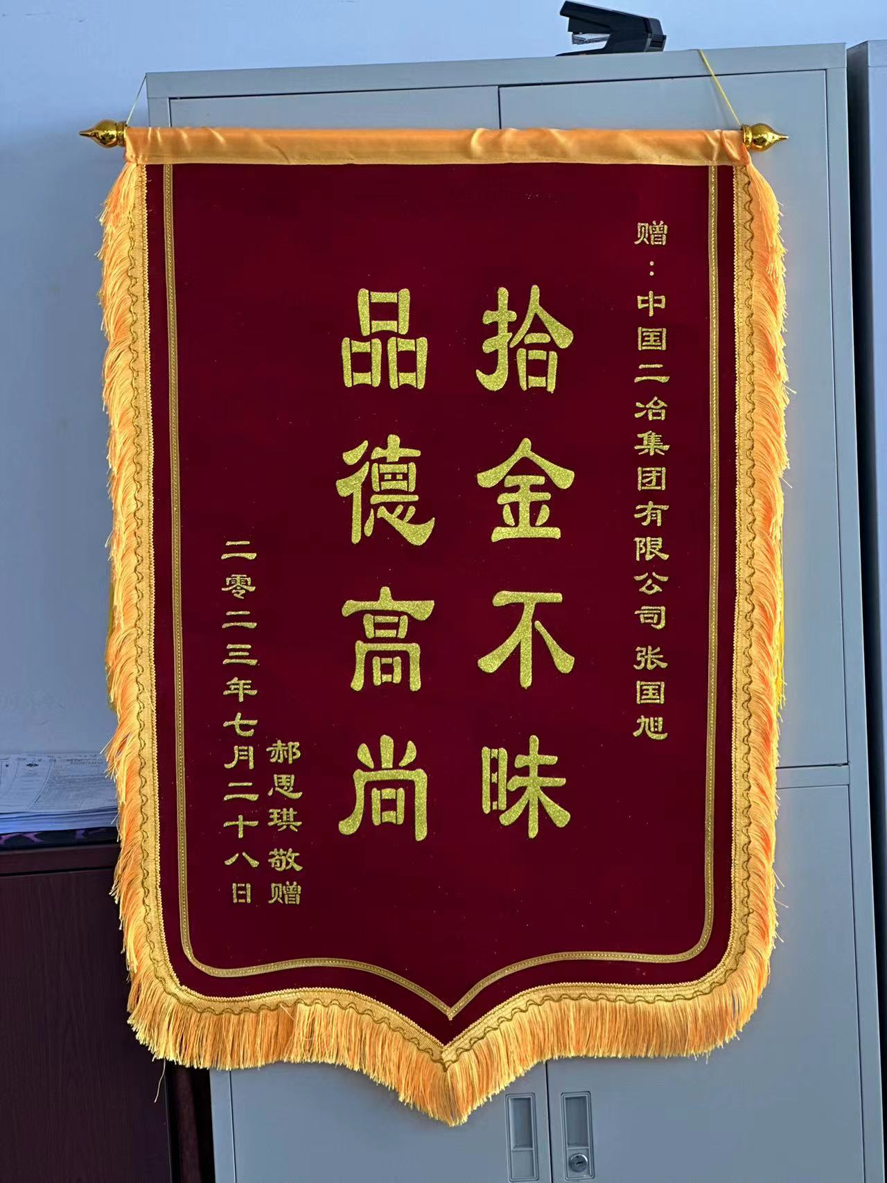7月28日,中國二冶收到一份“意外”的表揚信和一面錦旗。信中用樸實的言語對中國二冶新入職大學(xué)生張國旭拾金不昧的精神表示了贊揚與感謝。