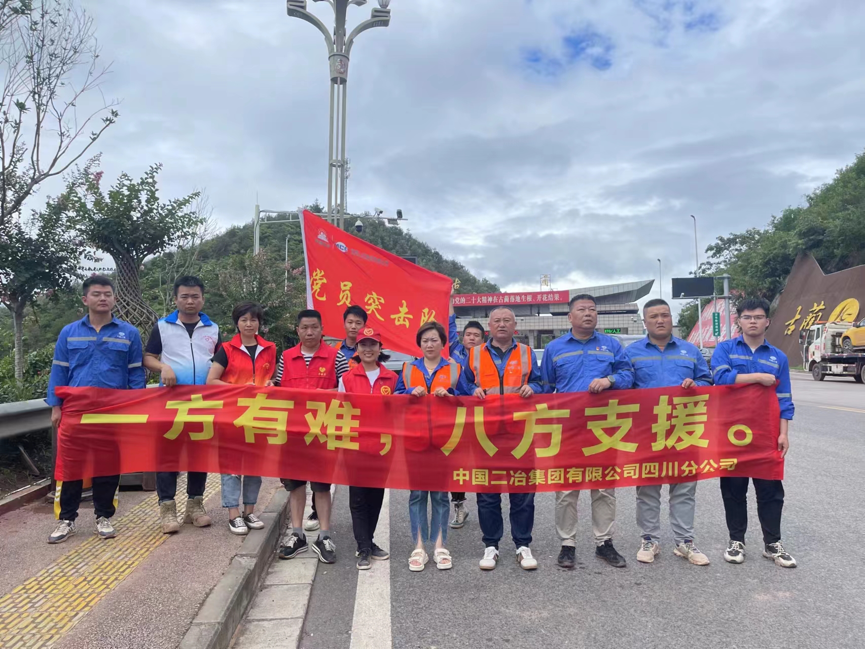 災情就是命令,28日凌晨,中國二冶四川分公司“抗洪搶險救災突擊隊”的8名成員(張成、崔延君、鄭碧容、楊雨、王云飛、陳宇杰、陳明川、杜國源),身著中國二冶藍色工裝在瀘州市住房和城鄉建設局門前有序集結,按照分公司黨委部署安排,參與古藺縣馳援的人員分為兩組,一組為隱患排查組,另一組為救援物資調配組。
